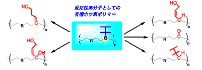 We explored the synthesis of novel polymers having a boron atom in the main chain by hydroboration polymerization. Their reaction with various nucleophiles via chain transformation provided a large number of functionalized polymers.